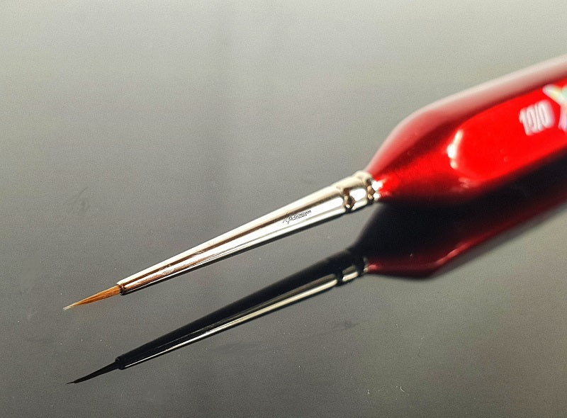 Red sable brush for detailed work. The brush fits very well in the hand and does not roll off the table due to its triangular shape.